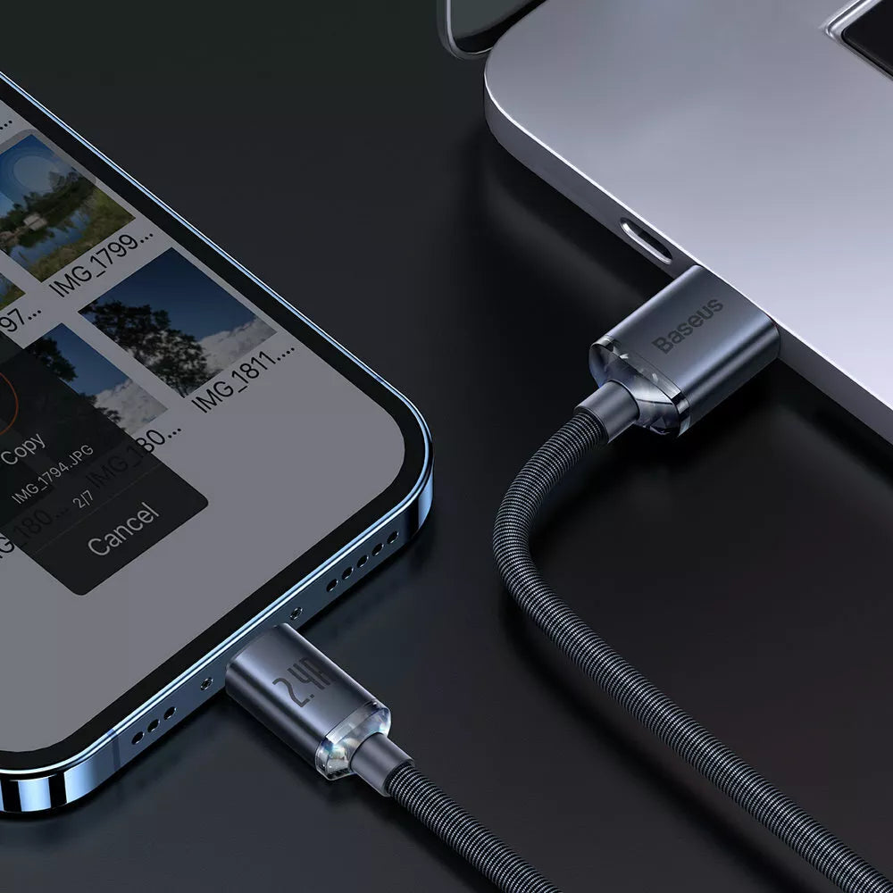 Baseus Crystal Shine Serie Schnelllade-Datenkabel 8Pin 2.4A 2m schwarz