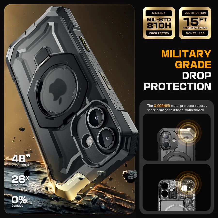 Supcase UB Grip Magsafe ist eine Hülle, die Haltbarkeit, Funktionalität und elegantes Design vereint. Es besteht aus schlagfestem TPU-Material und verfügt über verstärkte Ecken, die Schutz vor Stürzen gemäß den Militärstandards MIL-STD 810G (bis zu 15 Fuß) bieten. Die Rückseite der Hülle ist transparent und mattschwarz, was dem Gerät ein modernes Aussehen verleiht und das Telefon gleichzeitig vor Kratzern schützt.